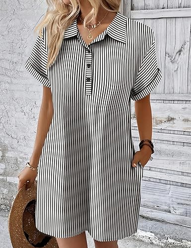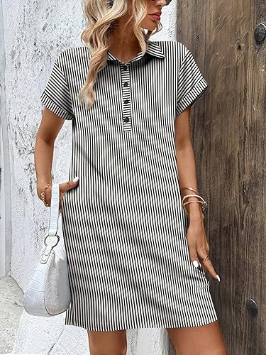 • 【Unique Design】Short sleeves, button-down closure, side hidden pockets, basic v neck collar and classic solid color. Simple and generous loose polo dress for a casual and stylish look.